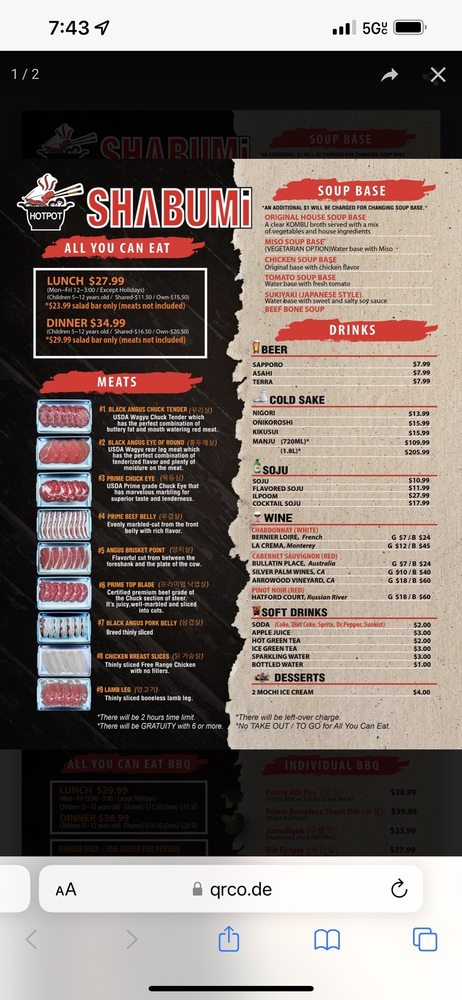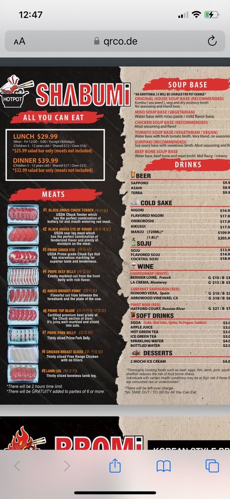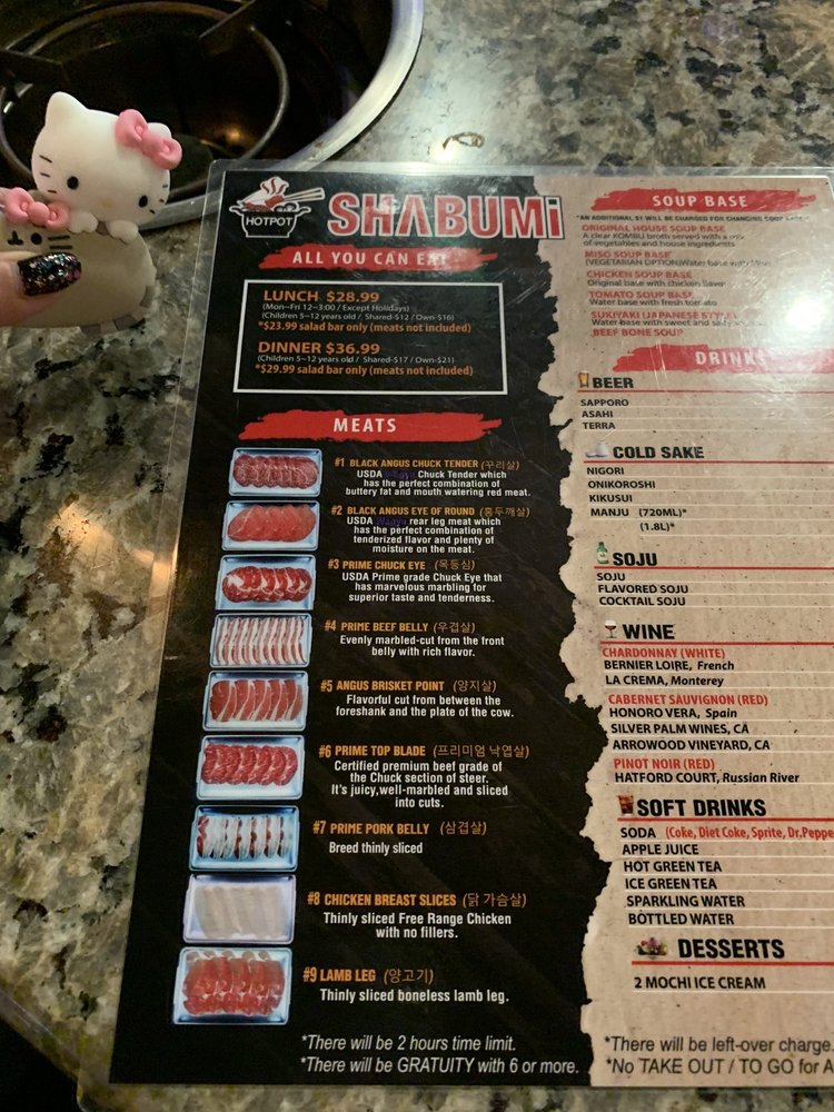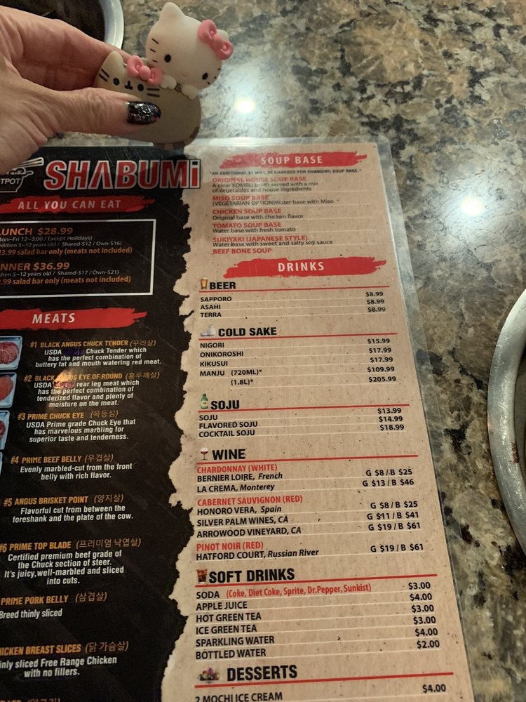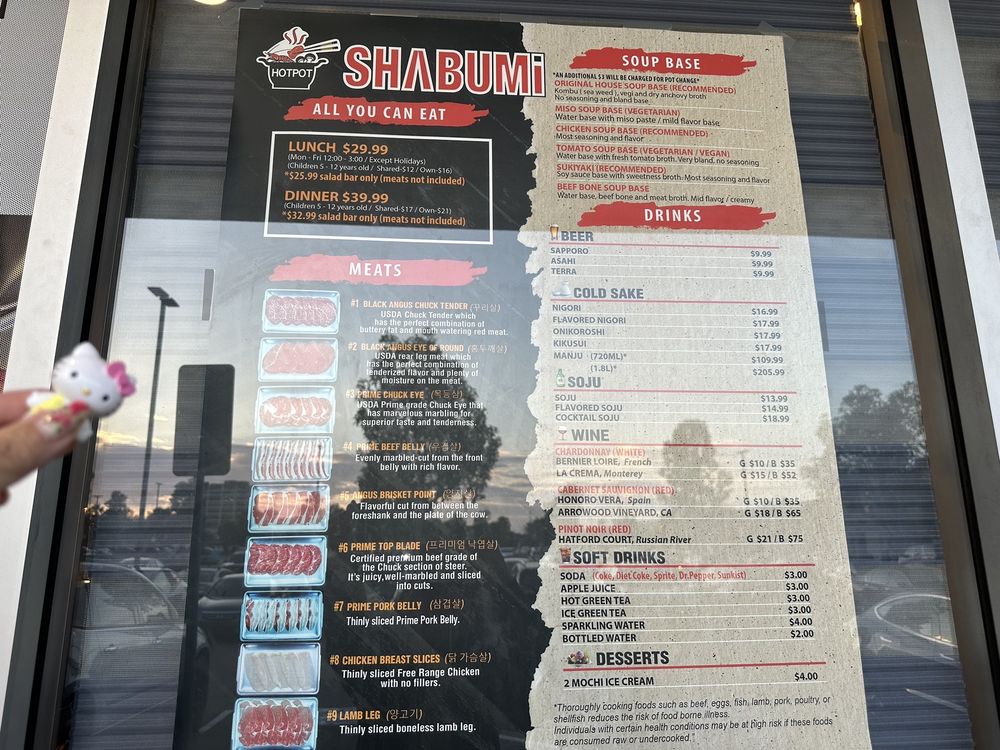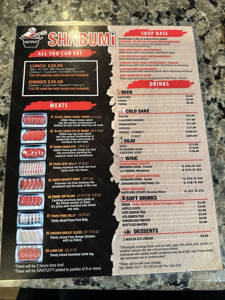 SHABUMi is a trendy and casual restaurant located in San Diego, CA, offering a unique blend of Korean BBQ and hot pot options. The menu includes a wide variety of meats, seafood, vegetables, and customizable options to suit every preference. Customers have praised the flavorful meats, broths, and the abundance of fresh ingredients available. The restaurant provides a fun and lively atmosphere, perfect for group gatherings and special occasions. With attentive service and a diverse selection of sauces and sides, SHABUMi is a must-visit for those looking for a memorable dining experience. Don't forget to come hungry, as it's an all-you-can-eat concept where you can indulge in a wide array of dishes. Plan ahead for potential wait times, as the popularity of SHABUMi often results in a line out the door. Overall, SHABUMi delivers a delightful fusion of Korean BBQ and hot pot, making it a top choice for a flavorful and interactive dining experience.